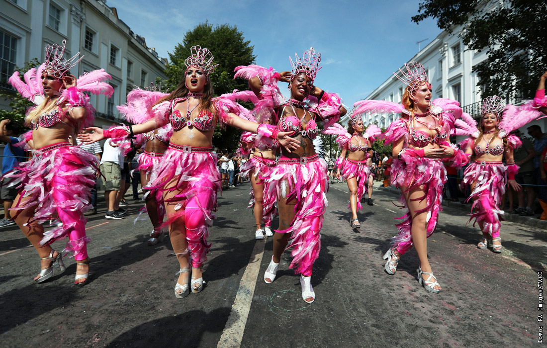 На улицах лондонского района Ноттинг-Хилл проходит традиционный карнавал, который ежегодно привлекает в город тысячи туристов со всего мира