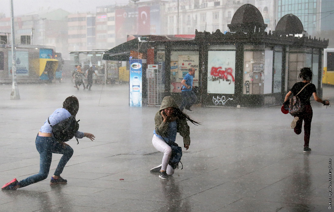 Сильный ливень с грозой и порывистым ветром обрушился на Стамбул