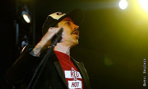 Солист Red Hot Chili Peppers Энтони Кидис. Концерт в Барселоне в рамках мирового турне группы. 15 декабря 2011.
