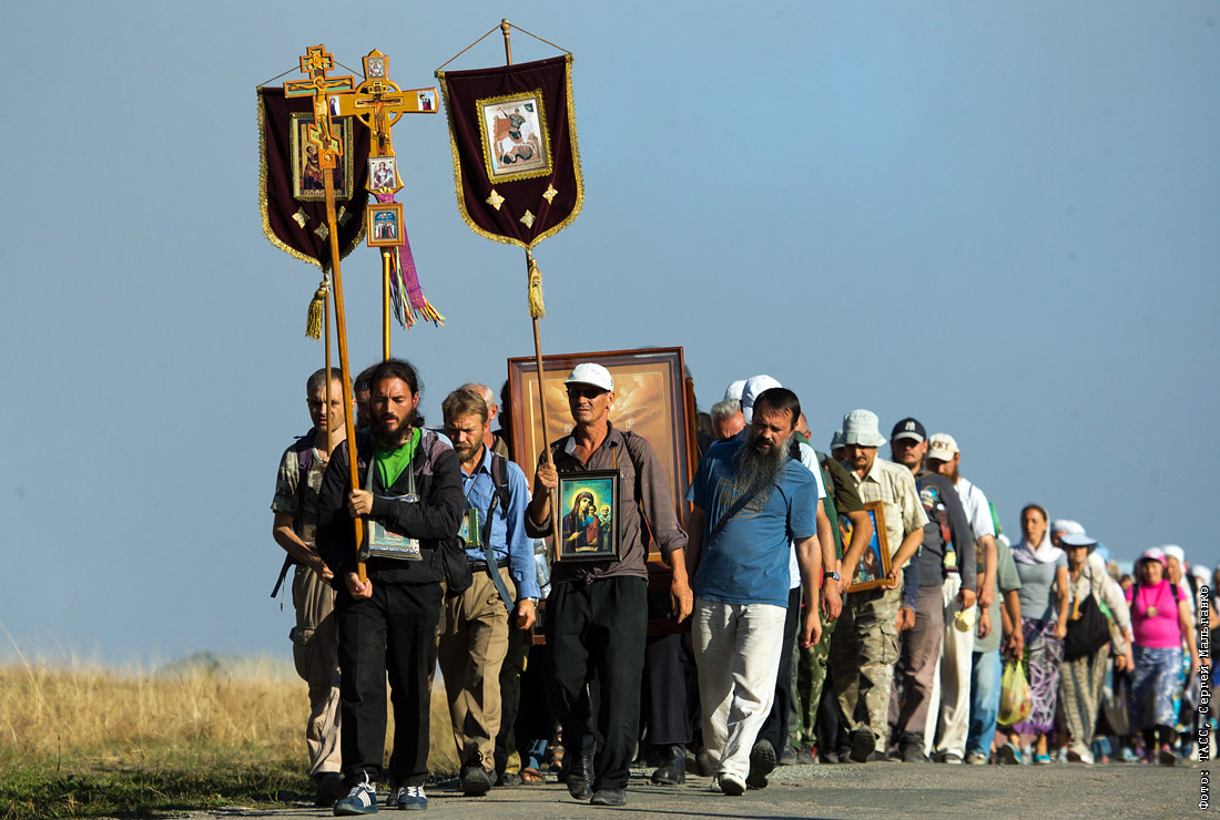 В Крыму проходит традиционный ежегодный крестный ход "Царский путь". Крестоходцы в молитвенном шествии совершают путь пешком от Севастополя до Ялты.
