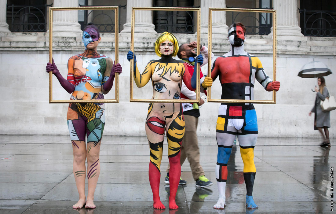В Лондоне группа активистов решила повысить интерес населения к искусству при помощи бодиарта. Модели с изображениями на теле известных картин Пабло Пикассо, Роя Лихтенштейна и Пита Мондриана вышли на улицы города, чтобы побудить британцев посещать художественные галереи.