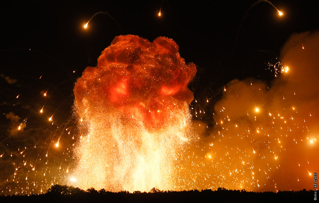 Поздно вечером во вторник, 26 сентября, из-за пожара в военной части в Калиновском районе Винницкой области Украины начались взрывы на складах с боеприпасами и оружием. Из-за ЧП пришлось эвакуировать около 30 тыс. человек.