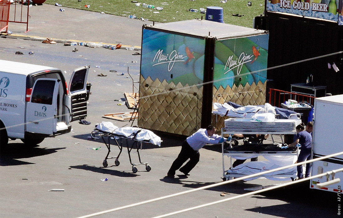 В Лас-Вегасе 2 октября произошло массовое убийство во время концерта на открытой площадке у казино Mandalay Bay. По данным полиции, преступник – 64-летний Стивен Паддок из штата Невада – открыл огонь с 32-го этажа гостиницы по зрителям фестиваля кантри. Жертвами стрельбы стали 59 человек, более 500 человек получили ранения. Стрельба в Лас-Вегасе оказалась самой кровопролитной в современной истории США.