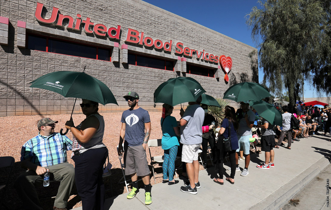 Очереди у пунктов приема крови для пострадавших при стрельбе