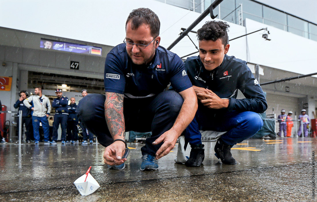 Сильный дождь сорвал вторую тренировку Гран-При Японии на автодроме "Сузука". В ожидании возможности начать работу гонщики "Формулы-1" пускали бумажные кораблики по пит-лейну.
