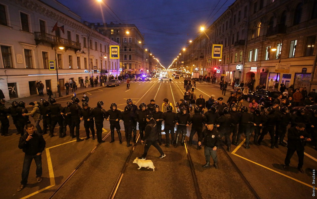 Полиция перекрыла улицу. Позже сообщалось, что из-за шествия оппозиции карета скорой помощи не смогла вовремя приехать на вызов к умирающей женщине