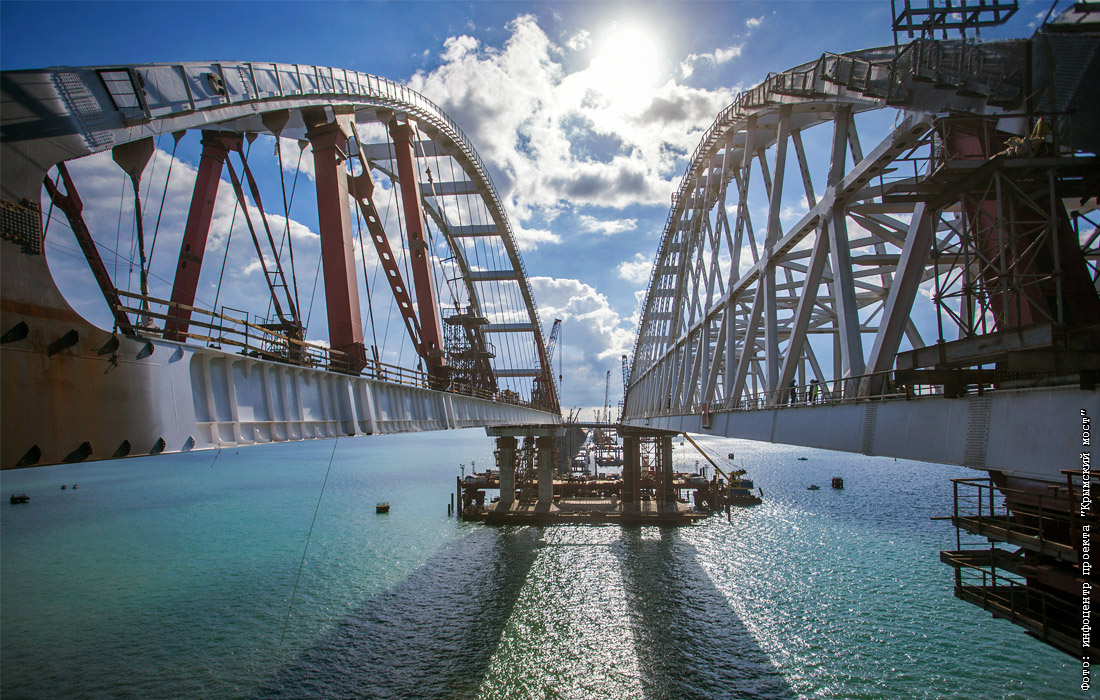 В Керченском проливе завершилась морская операция по транспортировке и установке на опоры второй - автодорожной - арки строящегося моста в Крым