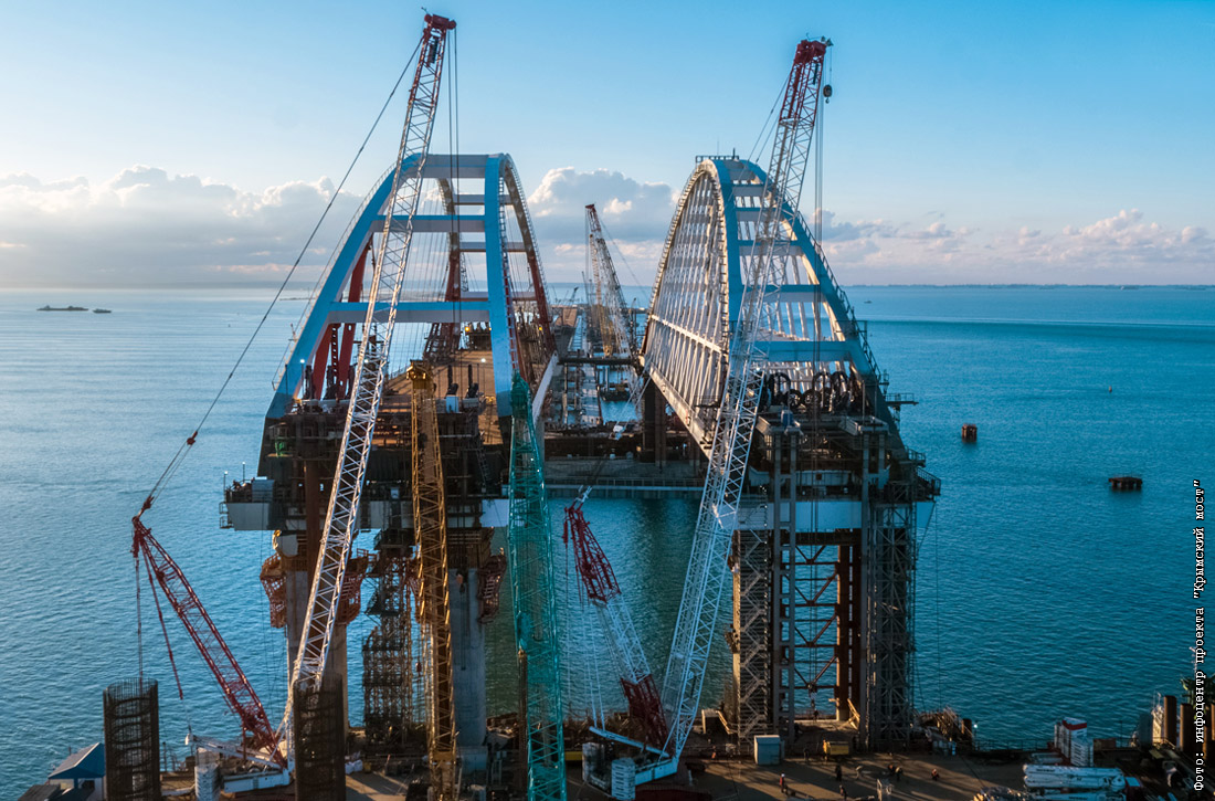 В Керченском проливе завершилась морская операция по транспортировке и установке на опоры второй - автодорожной - арки строящегося моста в Крым