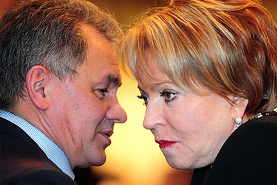Глава МЧС РФ Сергей Шойгу и губернатор Санкт-Петербурга Валентина Матвиенко на торжественном вечере в Большом театре, посвященном 80-летию со дня рождения первого президента РФ Бориса Ельцина