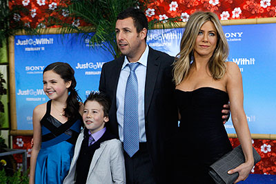 Актеры Адам Сандлер и Дженнифер Энистон на премьере фильма "Притворись моей женой" в Нью-Йорке