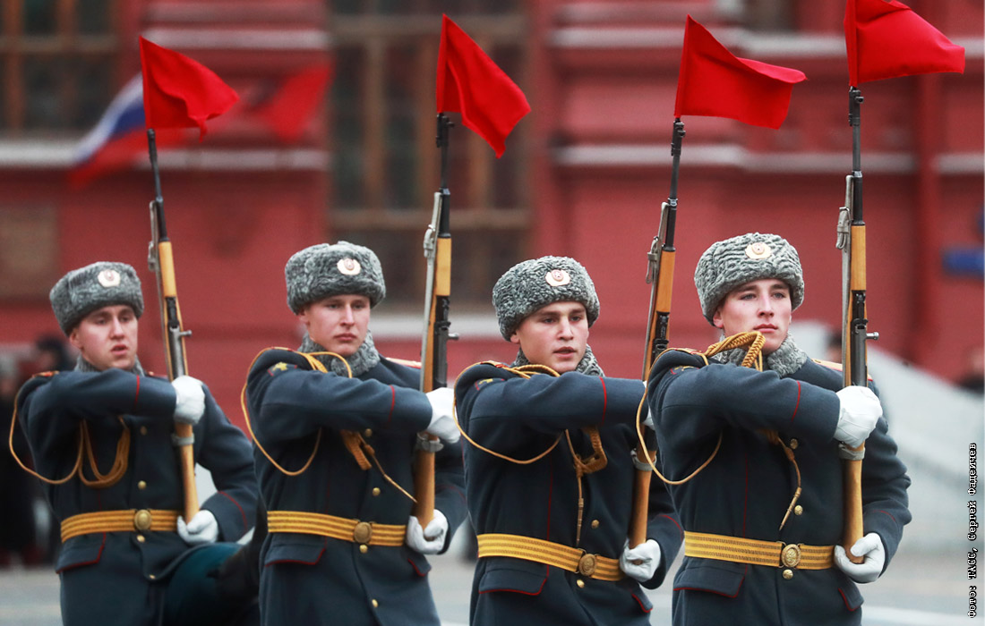 На Красной площади в Москве прошел торжественный марш, посвященный 76-й годовщине военного парада 7 ноября 1941 года. По главной площади страны прошли около 5 тыс. человек, среди них - военнослужащие воинских частей и учреждений Минобороны и кавалерийская группа президентского полка. Военный парад на Красной площади 7 ноября 1941 года был проведен во время битвы под Москвой в честь 24-й годовщины Октябрьской революции. В нем участвовали 28 тыс. 467 человек. Прямо с Красной площади курсанты военных училищ, артиллеристы и пехотинцы, зенитчики и моряки уходили на фронт, линия которого проходила всего в 30 километрах от города.