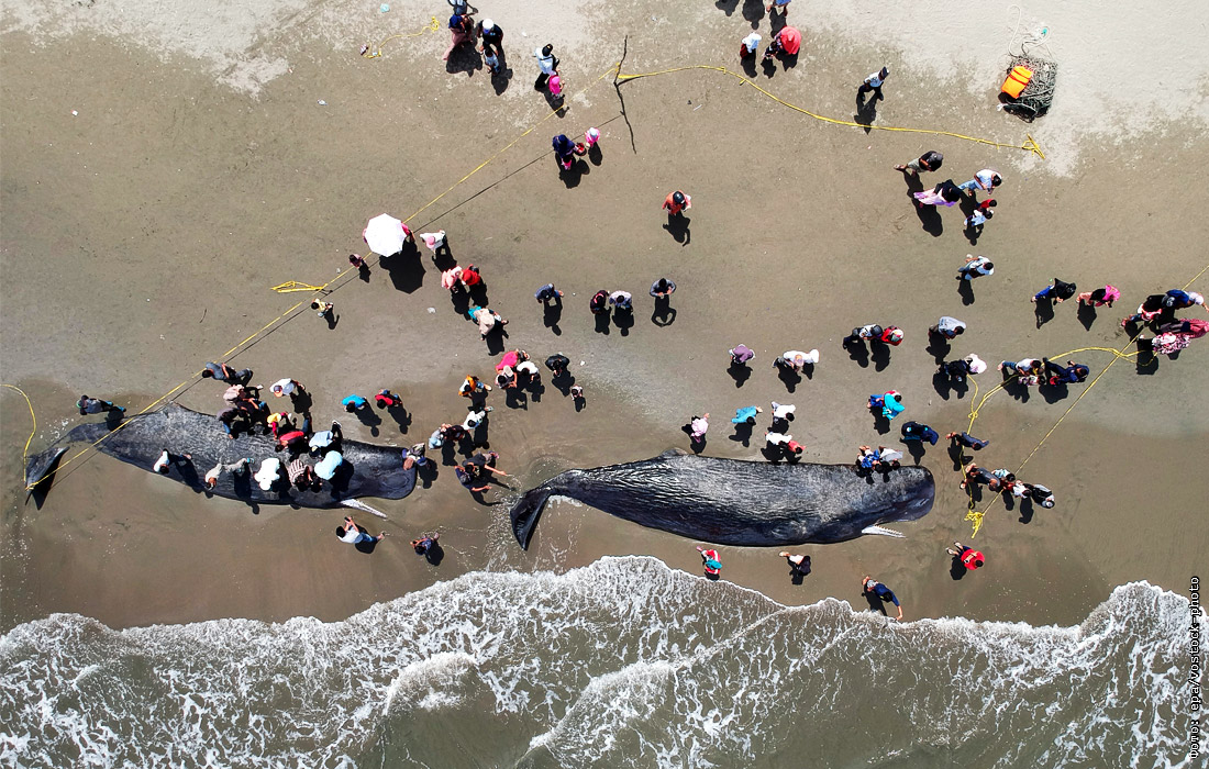 Десять кашалотов выбросились на пляж Уджонг Каренг в индонезийской провинции Ачех