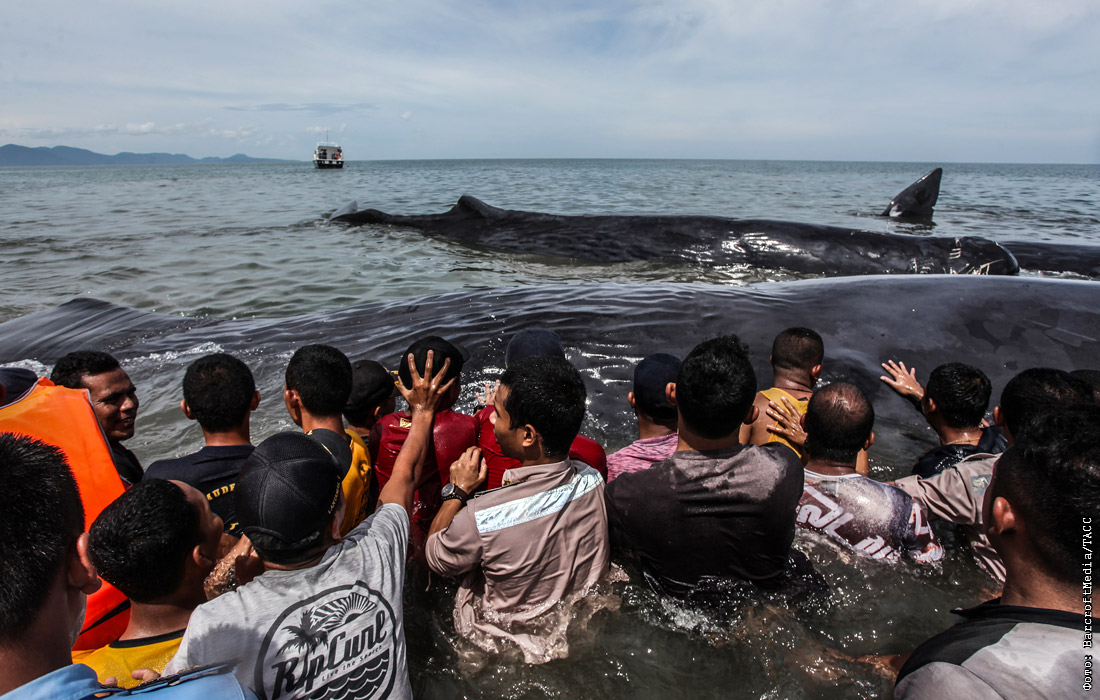 Десять кашалотов выбросились на пляж Уджонг Каренг в индонезийской провинции Ачех