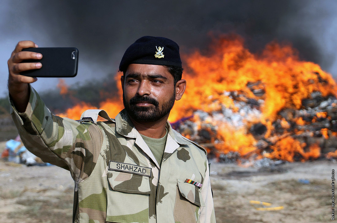 Уничтожение контрабандного алкоголя в Карачи. Пакистан.