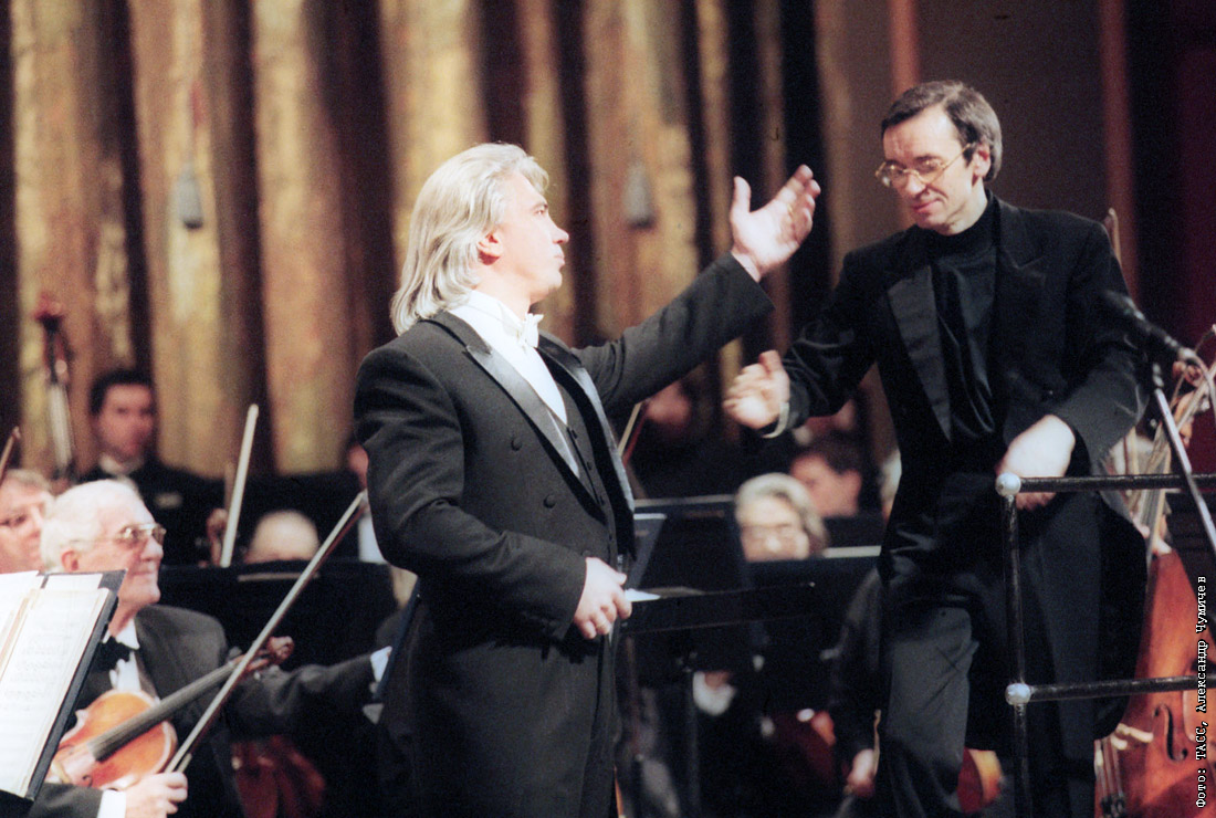 Во время выступления на торжественном вечере, посвященном открытию нового помещения театра "Новая опера" в московском саду "Эрмитаж". 1997 год.