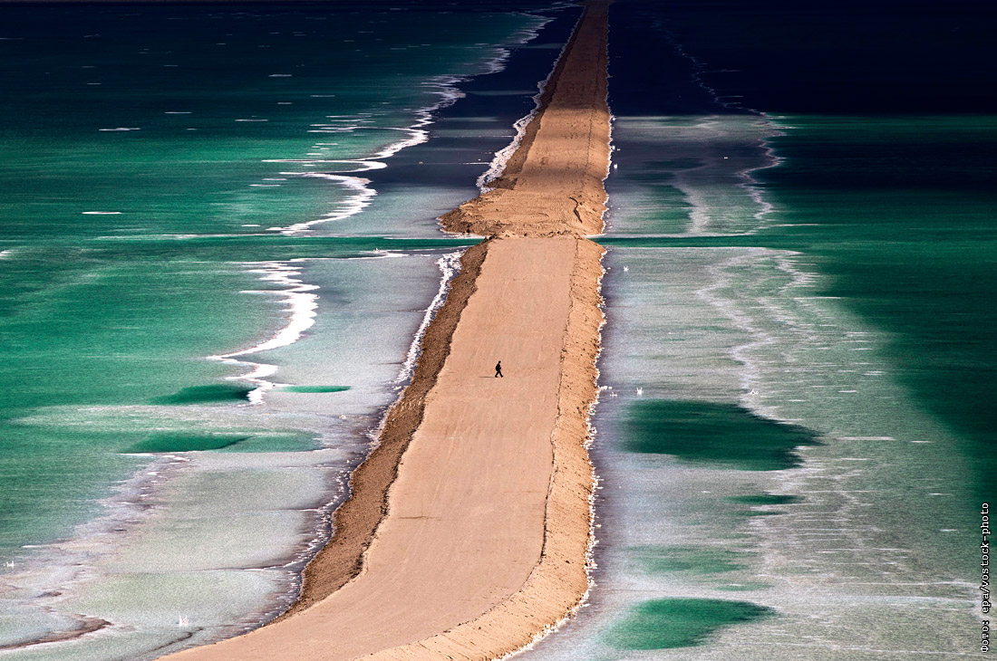 Песчаный барьер на побережье Мертвого моря. Израиль.