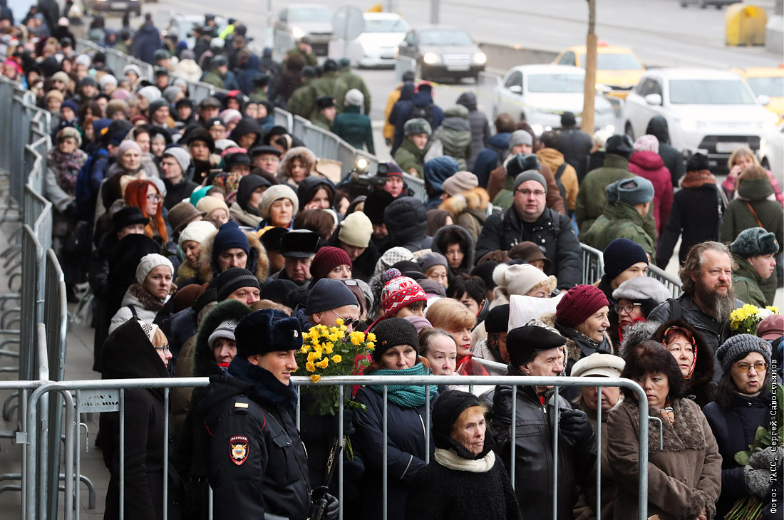 Очередь из желающих проститься с артистом у Концертного зала имени П. И. Чайковского