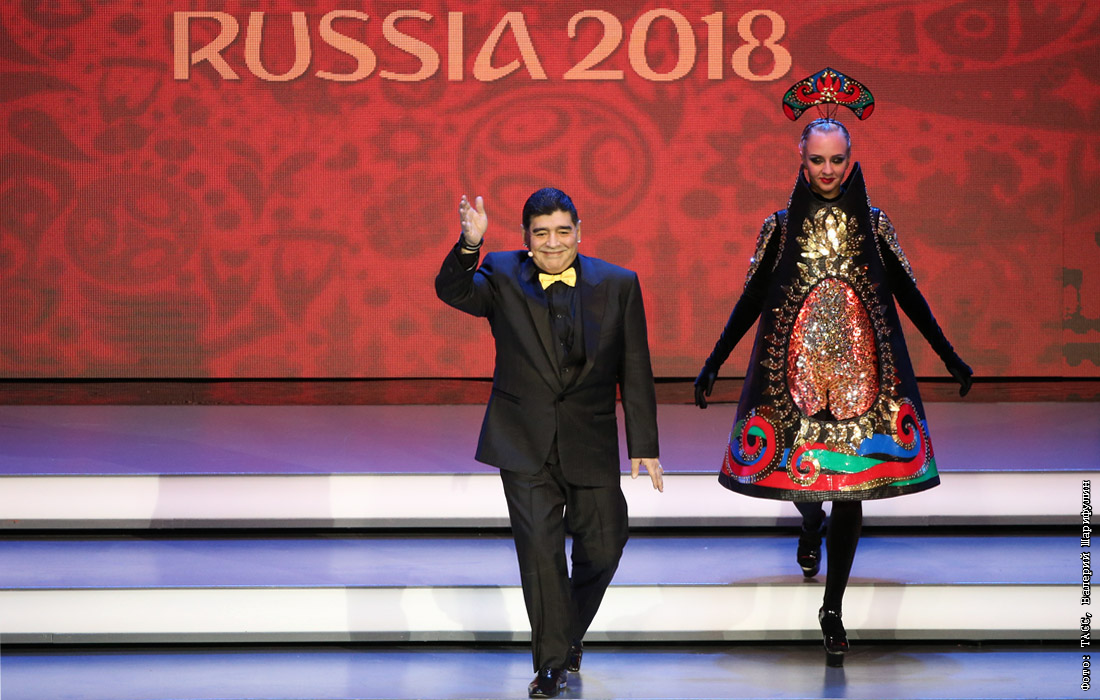 Аргентинский футболист Диего Марадонна на церемонии жеребьевки