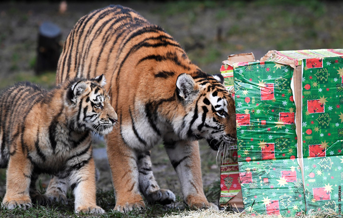 Тигры из зоопарка "Хагенбек" в Гамбурге получили угощения к Рождеству