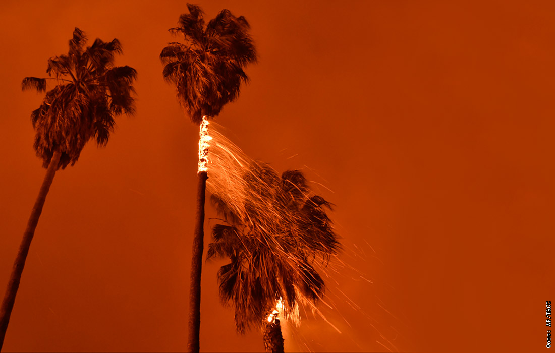 Лесные пожары бушуют в американском штате Калифорния. Возгорание охватило около 12 кв. км. Огонь повредил линии электропередач, в связи с чем более 260 тыс. человек на юге штата остались без электроснабжения. В результате разгула стихии погиб по меньшей мере один человек.