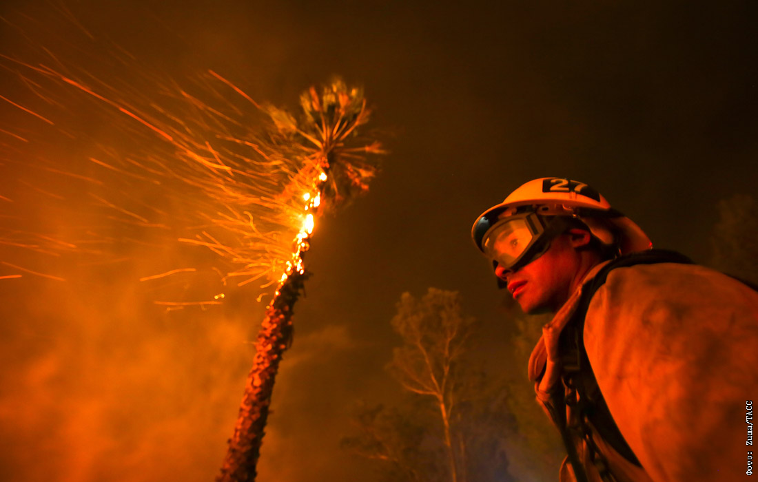 Природные пожары бушуют в четырех районах южной части Калифорнии. Власти округа Лос-Анджелес установили самый высокий в истории уровень опасности.