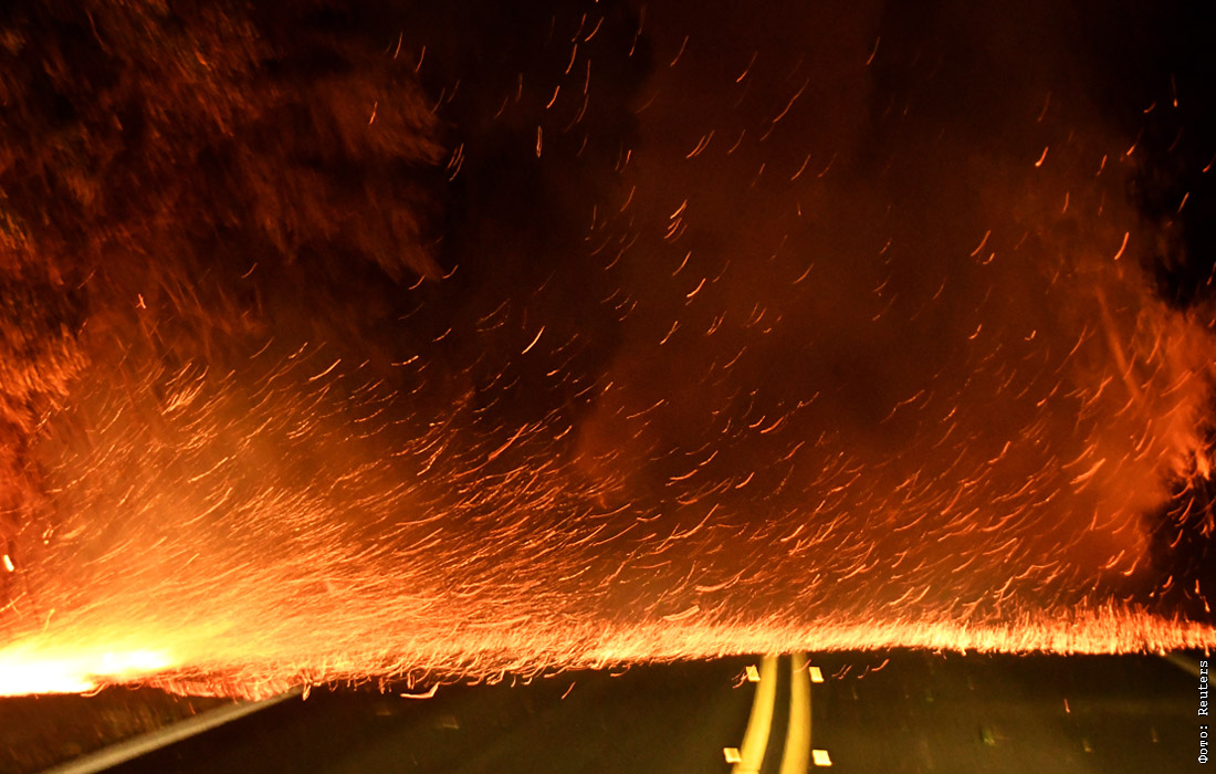 Распространение огня также привело к перебоям с электроснабжением. Более 260 тыс. человек на юге штата остаются без электричества