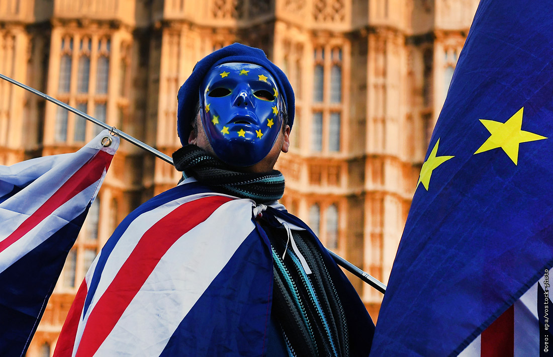 Акция протеста перед заднием парламента в Лондоне во время выступления премьер-министра Терезы Мэй по итогам саммита ЕС