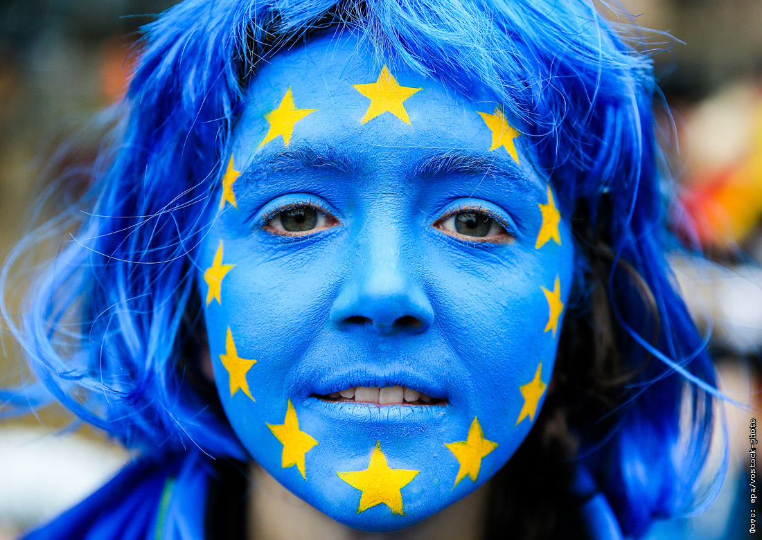 Участник демонстрации перед саммитом ЕС в Брюсселе