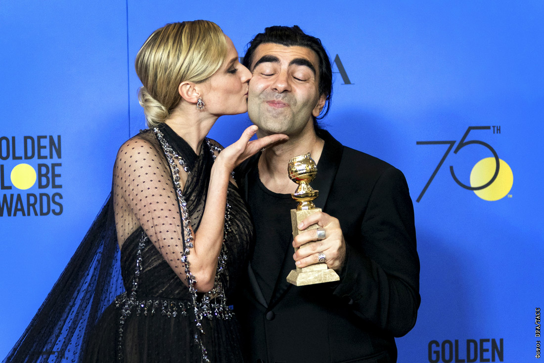 Актриса Диана Крюгер и режиссер Фатих Акин с наградой "Золотой глобус" в категории "Лучший фильм на иностранном языке" (картина "На пределе" )
