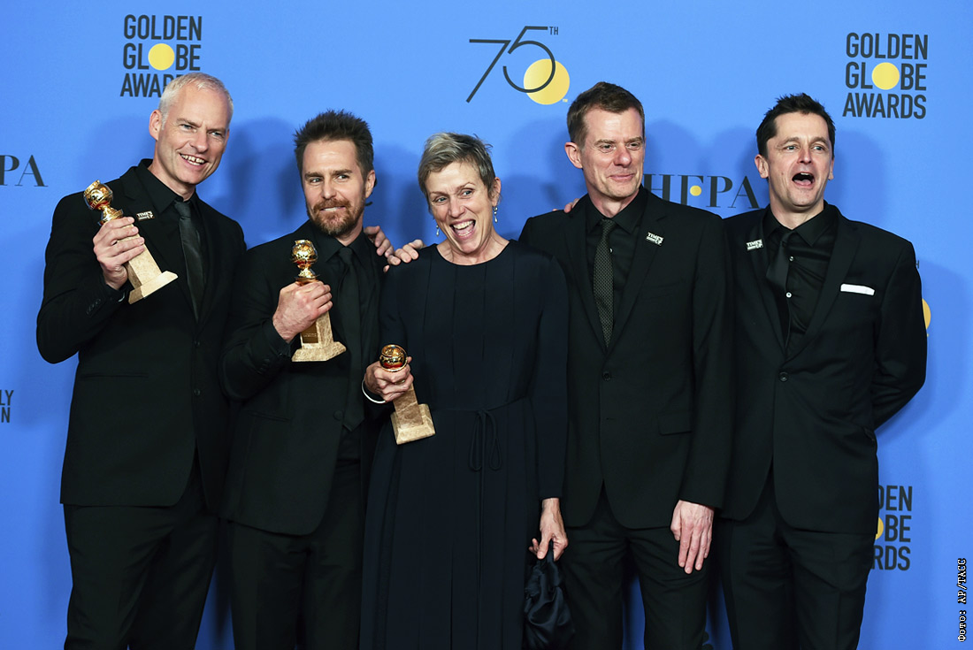 Съемочная группа фильма "Три билборда на границе Эббинга, Миссури", получившего "Золотой глобус" как лучшая драма