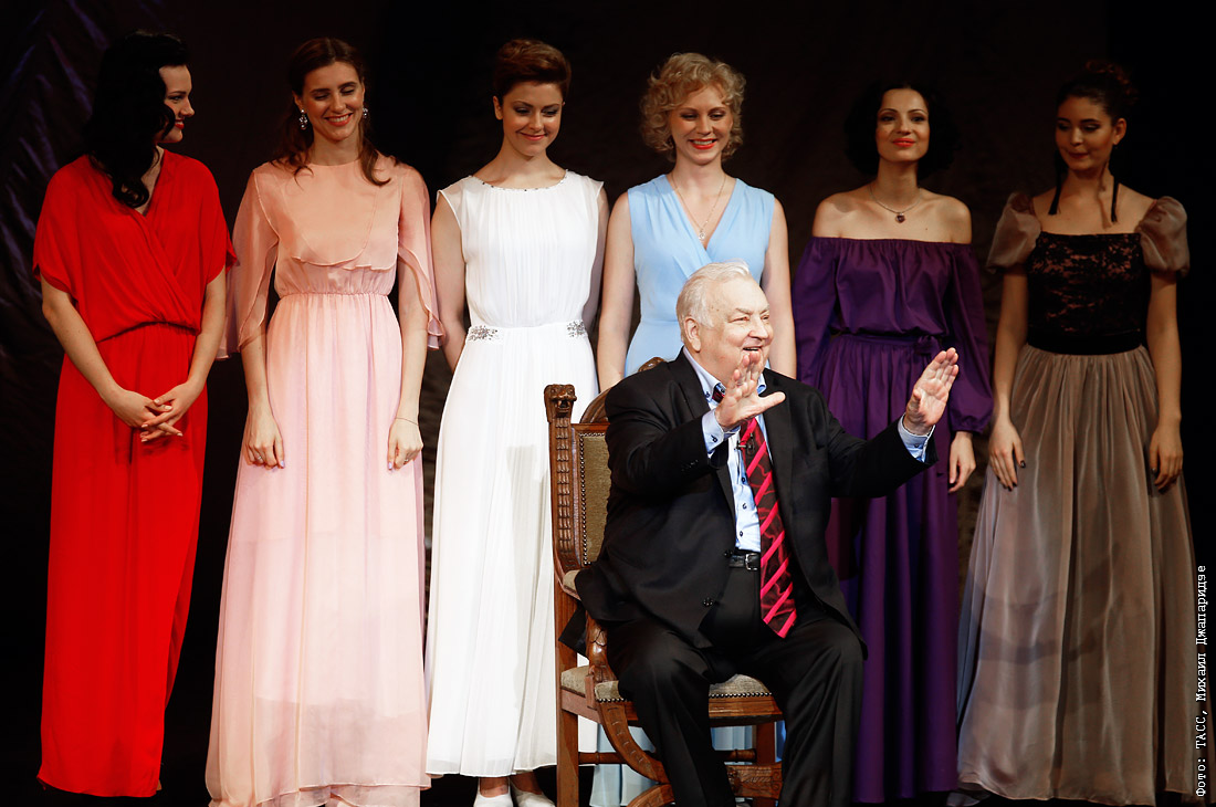 Актер Михаил Державин во время торжественного вечера, посвященного его 80-летнему юбилею в театре Сатиры. 2016 год.
