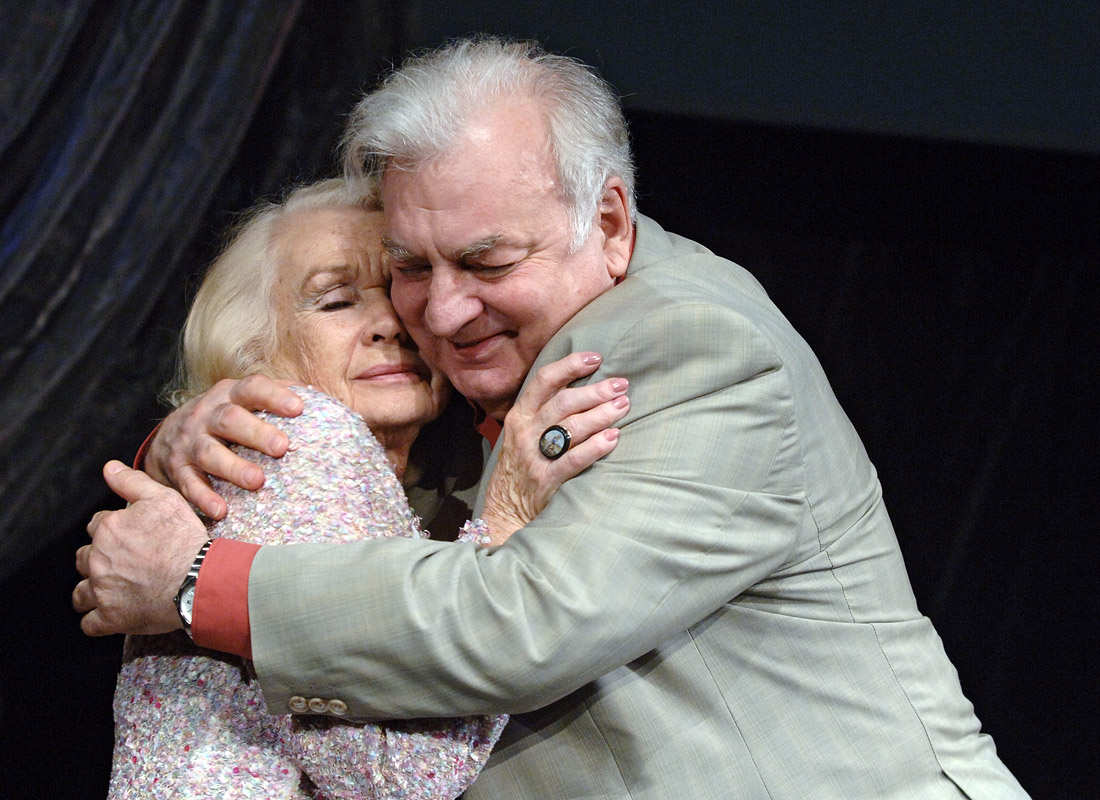 Михаил Державин с народной артисткой России Ниной Архиповой на праздновании ее 80-летия в Театре Сатиры. 2006 год.