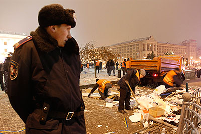 На Украине в ночь с четверга на пятницу с привлечением спецподразделений МВД был разобран палаточный городок предпринимателей на Майдане в Киеве. Как сообщает корреспондент интернет-издания "Украинской правды", в 5 часов утра Майдан был окружен четырьмя кордонами сотрудников МВД