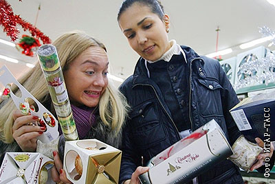 Покупатели в магазине "Твой дом" во время предновогодней распродажи игрушек и елочных украшений