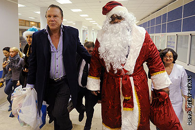 Американский актер Микки Рурк во время посещения детского онкологического отделения 31-й городской больницы в рамках благотворительного проекта в поддержку борьбы с детскими онкологическими заболеваниями