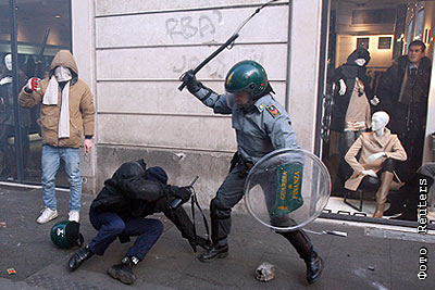 Столкновения противников правительства Сильвио Берлускони и полиции произошли во вторник в центре Рима, где в демонстрации участвуют около 100 тыс. человек. Итальянские полицейские перекрыли все подходы к Сенату и Палате депутатов, где во вторник прошло голосование по вопросу о недоверии правительству. По первоначальным данным итальянского телеканала РАИ24, 40 человек ранены. Есть задержанные
