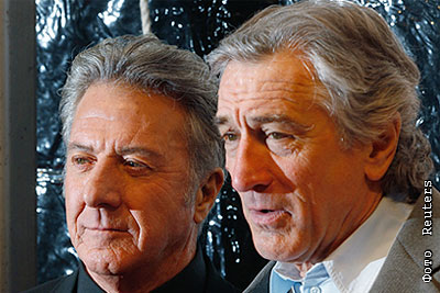 Актеры Дастин Хоффман и Роберт Де Ниро на премьере фильма "Знакомство с Факерами 2 " в Нью-Йорке