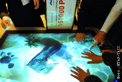 Сенсорный стол, сконструированный калининградскими студентами с использованием multitouch-технологии. Экран распознает более 500 одновременных касаний и определяет предметы лежащие на поверхности