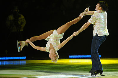 Фигуристы Елена Леонова и Андрей Хвалько во время выступления в шоу "Лед и пламень" в Ледовом дворце Санкт-Петербурга