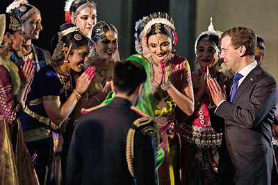 Президент России Дмитрий Медведев во время визита в Индию