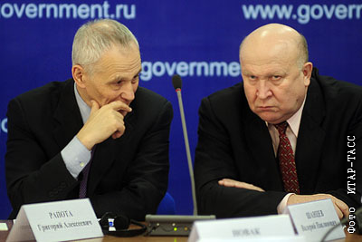 Полпред президента РФ в ПФО Григорий Рапота и губернатор Нижегородской области Валерий Шанцев (слева направо) во время совещания "О ходе реализации стратегии развития автомобильной промышленности РФ на период до 2020 года"