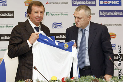 Главный тренер киевского "Динамо" Юрий Семин и президент киевского "Динамо" Григорий Суркис (слева направо) на пресс-конференции