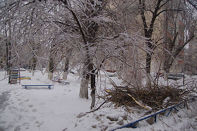 В Юго-Западном, Южном, Юго-Восточном и Восточном административных округах Москвы из-за наледи, вызванной дождем в морозную погоду, в воскресенье были повалены или повреждены около 2 тысяч деревьев .