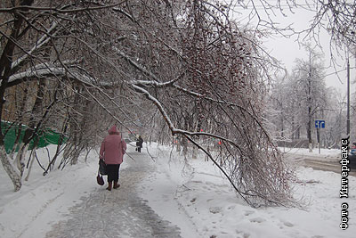 В воскресенье все городские коммунальные службы были заняты чисткой тротуара от наледи и снега, а также крыш от многочисленных сосулек, образовавшихся из-за дождя.