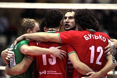 Игроки "Локомотива" после победы в финальном матче Кубка России по волейболу: "Локомотив" (Новосибирск) - "Динамо" (Москва) - 3:1