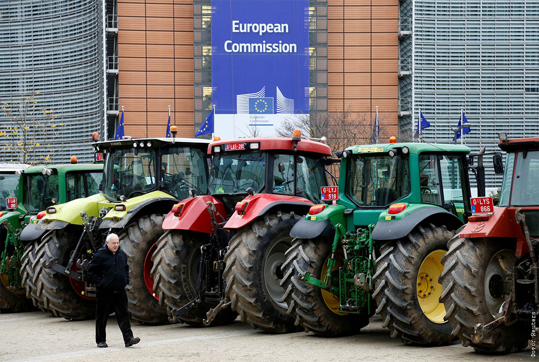 Бельгийские фермеры собрались у здания Еврокомиссии, чтобы обратить внимание чиновников на проблемы в сфере животноводства