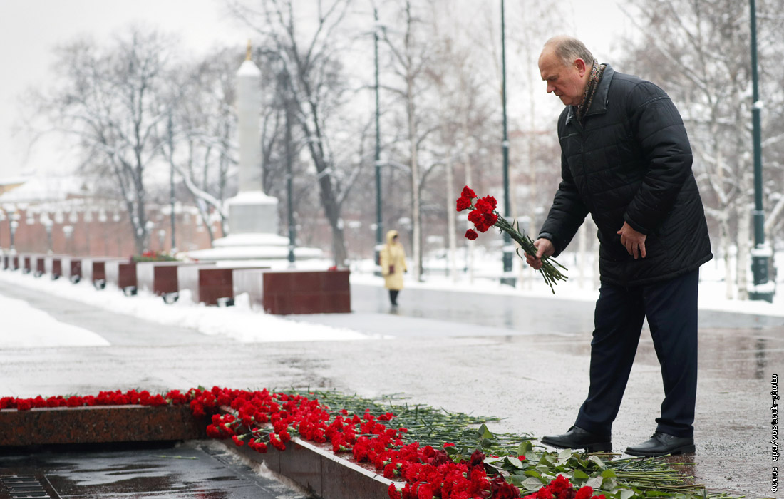 Лидер КПРФ Геннадий Зюганов возлагает цветы к Могиле Неизвестного Солдата в Александровском саду в честь 75-летия Сталинградской битвы