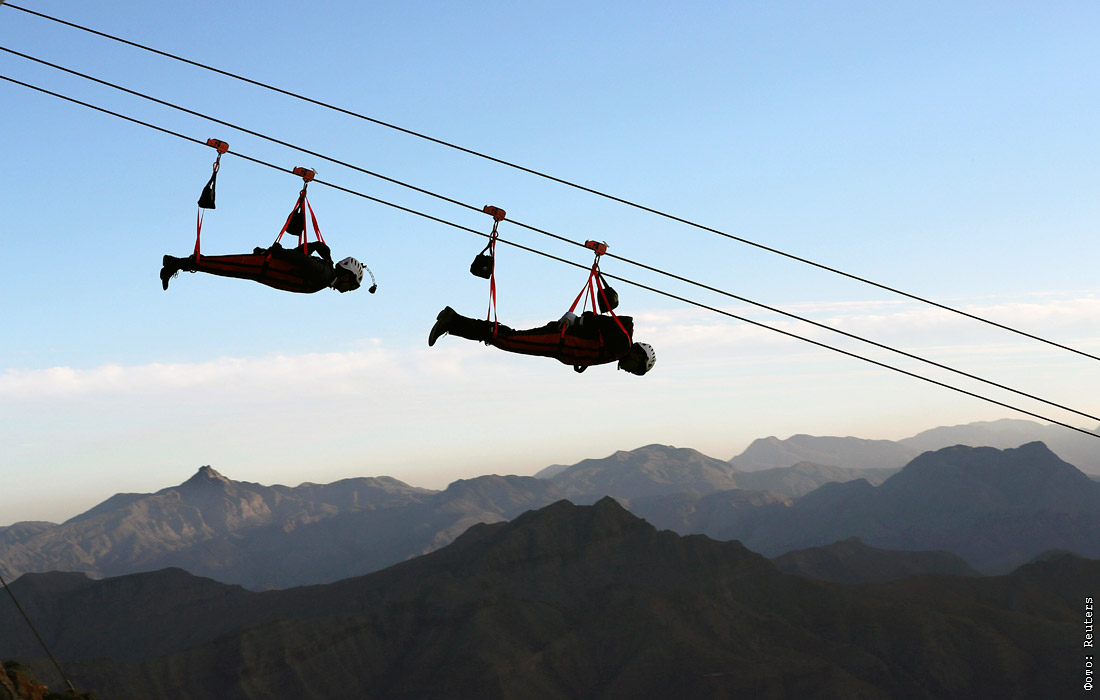 Самый длинный в мире зиплайн на горе Джебель-Джайс в эмирате Рас-эль-Хайма. ОАЭ.