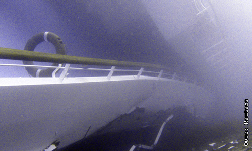 Итальянские власти говорят, что полузатонувший круизный лайнер "Коста Конкордия" в результате волнения на море может опрокинуться и полностью уйти под воду, передает Би-би-си. Они считают, что вероятность такого развития событий весьма велика. Судно лежит правым бортом на подводном уступе возле острова Джильо.