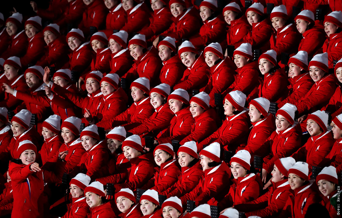 Группа поддержки сборной КНДР уже в первые дни Олимпиады в Пхенчхане оказалась в центре внимания. Девушки-чирлидеры, которых специально отобрали власти Северной Кореи, активно поддерживают своих спортсменов аплодисментами, песнями и зажигательными танцами. Впрочем, атлетам из КНДР это пока не особо помогло: к настоящему моменту они не завоевали ни одной медали.